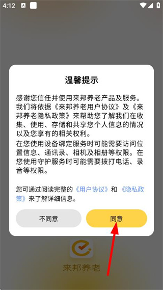 1、在溫馨提示彈窗中,點(diǎn)擊同意,進(jìn)入登錄注冊(cè)頁(yè)面。
