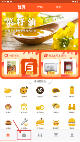 1、打開食品電商應(yīng)用,點擊底部購物籃選項,進入商品瀏覽頁面。