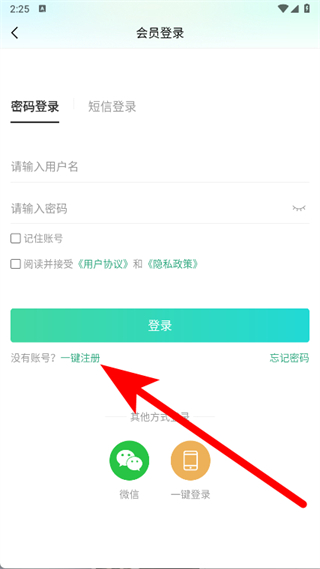 3、進入會員登錄頁面,點擊一鍵注冊。