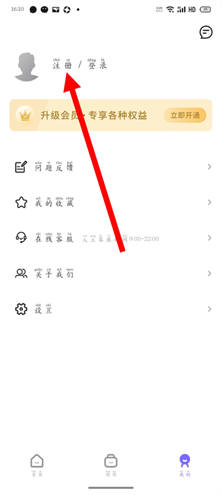 3、在我的頁面,點擊注冊登錄按鈕。