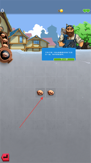 1、按提示將礦石熔在一起,制作裝備部件,點擊下一步繼續(xù)。