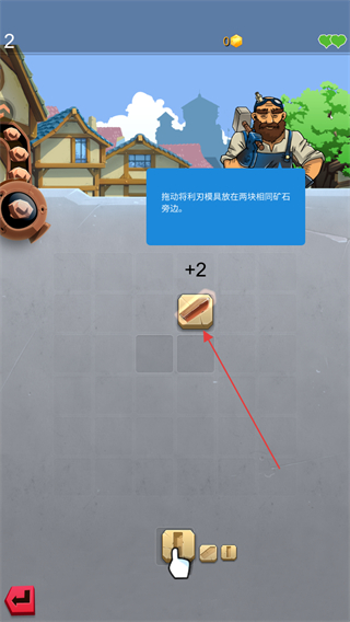 2、拖動利刃模具,放置在兩塊相同礦石旁邊,進行道具制作。