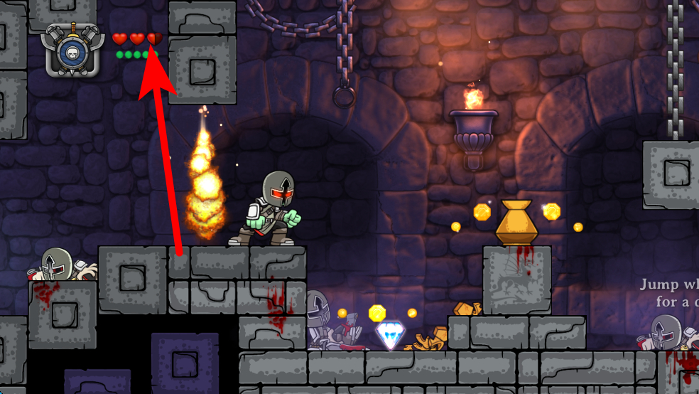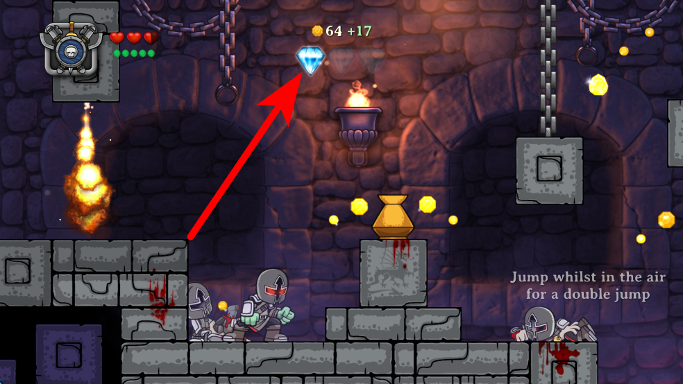 1、進(jìn)入游戲后,選擇Newgame開啟新冒險(xiǎn),操控角色在城堡場(chǎng)景中移動(dòng),可通過跳躍等操作躲避火焰等陷阱,同時(shí)留意周圍怪物,準(zhǔn)備戰(zhàn)斗。