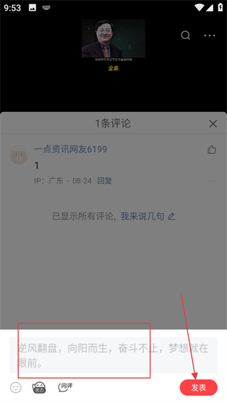 4、在輸入框頁(yè)面輸入完成后,點(diǎn)擊發(fā)表,發(fā)布評(píng)論。
