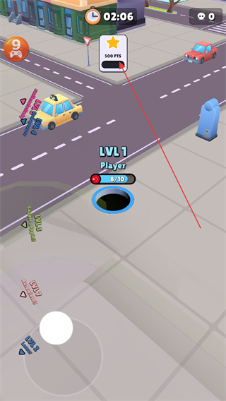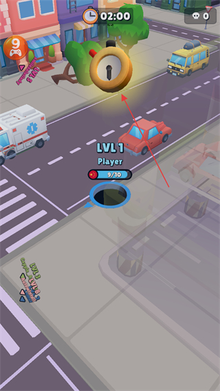 3、在規(guī)定時(shí)間內(nèi),不斷移動(dòng)黑洞,吞噬更多物品提升等級(jí)和進(jìn)度,同時(shí)注意躲避車輛。