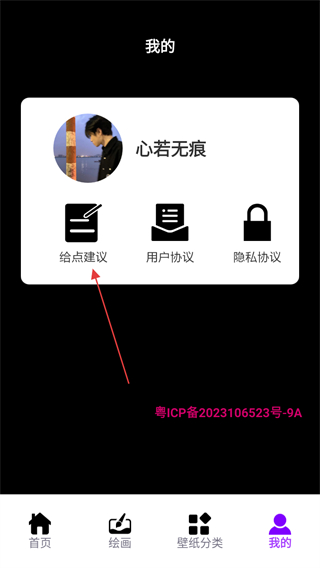 2、在個(gè)人頁(yè)面,點(diǎn)擊給點(diǎn)建議,進(jìn)入問(wèn)題反饋?lái)?yè)面。