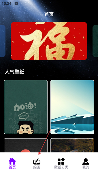 1、進(jìn)入軟件首頁,點(diǎn)擊底部繪畫,進(jìn)入繪畫工具頁面。