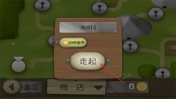 1、在關卡選擇界面,確認關卡信息,如挑戰(zhàn)1-1,消耗2000金幣后點擊走起進入游戲。