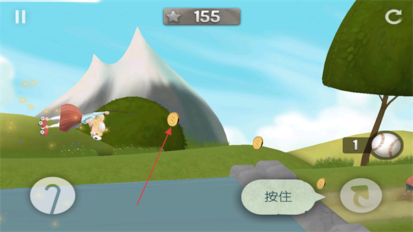 2、進入游戲后,老奶奶開始跑酷,按住屏幕相關區(qū)域控制老奶奶跳躍等動作,收集沿途金幣。