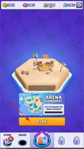 1、開始啟動游戲,點擊PLAY的按鈕,進入游戲的場景,開始黑洞吞噬的挑戰(zhàn)。