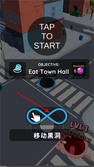 2、開始進行操作,點擊TAP TO START或提示區(qū)域,操控黑洞進行吞噬操作。