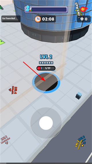 4、升級黑洞,通過持續(xù)吞噬目標,提升黑洞等級,以便吞噬物體,完成關(guān)卡目標。