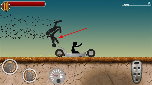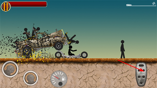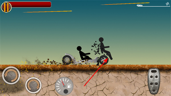 戰(zhàn)斗過程中需兼顧前進與防御,既要躲避其他車輛撞擊防止停滯,又要利用武器反擊火柴人射擊,還能通過擊毀敵方的車輛拾取道具強化自身。