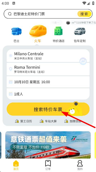 1、確認(rèn)出發(fā)地、目的地、日期、人數(shù)等信息后,點(diǎn)擊搜索特價(jià)車票,查詢車票。