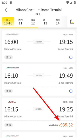 2、在車票列表頁面,點(diǎn)擊要選擇的車次價(jià)格區(qū)域,進(jìn)入選擇座位類型頁面。