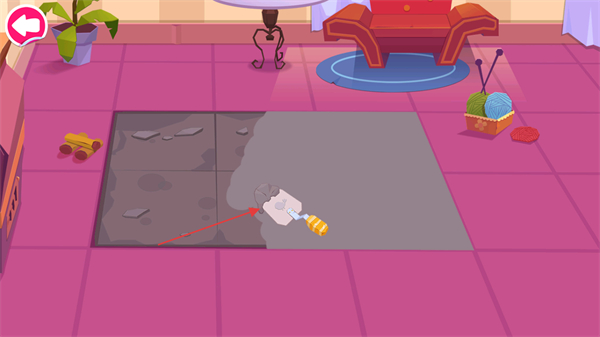 1、進入游戲場景,操控角色糖糖,看到房屋內(nèi)有需要修理的地方,比如破損的地板,點擊開始修理任務。