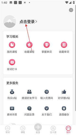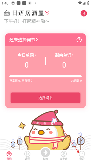 1、進入日語u學(xué)院,在首頁點擊底部我的,進入個人頁面。