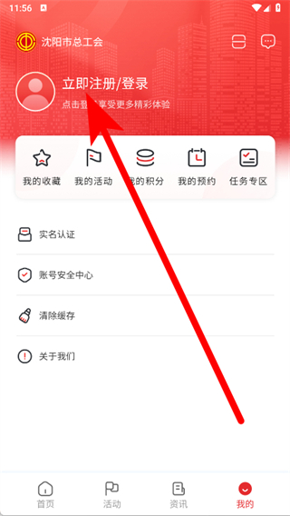 2、在我的頁(yè)面,點(diǎn)擊立即注冊(cè)登錄。
