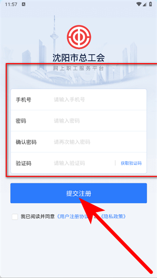 4、在注冊(cè)頁(yè)面,填寫(xiě)手機(jī)號(hào),獲取并輸入驗(yàn)證碼等,勾選后點(diǎn)擊提交注冊(cè)。