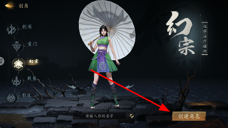 1、創(chuàng)建職業(yè)角色,可以選擇如幻宗等職業(yè),輸入名字后點(diǎn)擊創(chuàng)建角色,即可進(jìn)入游戲世界。