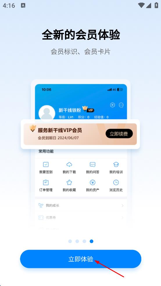 1、打開廣聯(lián)達線上服務(wù)平臺相關(guān)應(yīng)用,進入到“全新的會員體驗”介紹頁面,點擊“立即體驗”,進入到應(yīng)用主界面。