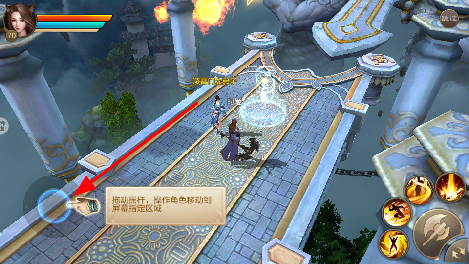 1、通過拖動左側(cè)搖桿,能控制角色移動到屏幕指定區(qū)域,以此調(diào)整戰(zhàn)斗位置,接近敵人或躲避攻擊。