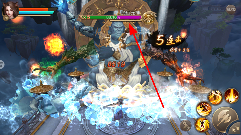 2、點擊右側(cè)對應(yīng)技能圖標(biāo),對敵人釋放技能,不同技能有不同效果,合理使用能高效打擊敵人。