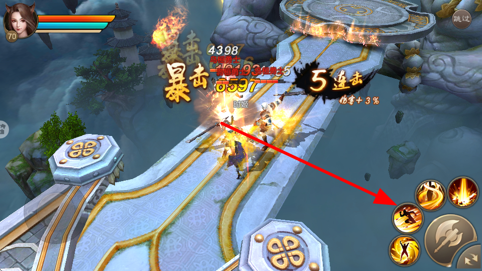 2、點擊右側對應技能圖標,對敵人釋放技能,不同技能有不同效果,合理使用能高效打擊敵人。
