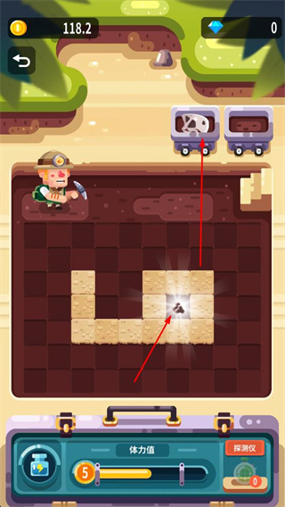 2、存在挖掘環(huán)節(jié),玩家操控礦工角色在挖掘區(qū)域使用工具挖掘,挖掘過程需消耗體力值,挖掘出的物品可收集,用于博物館的展品布置等。