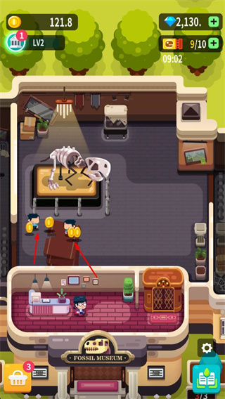 3、博物館建成后,會有游客進(jìn)入?yún)⒂^,游客參觀過程中會產(chǎn)生金幣收益,玩家可通過優(yōu)化展區(qū)等方式,吸引更多游客,獲取更多金幣。