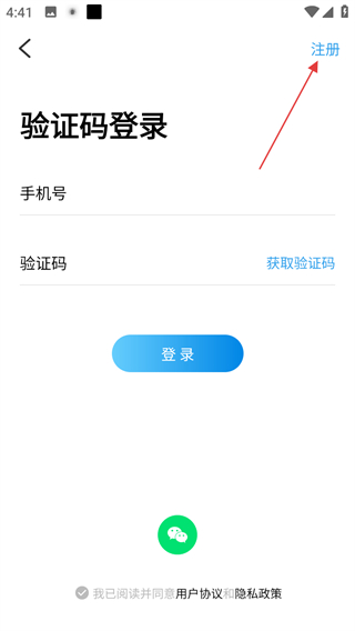 3、在登錄頁面,點(diǎn)擊注冊,進(jìn)入注冊操作頁面。