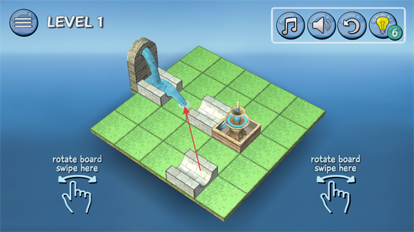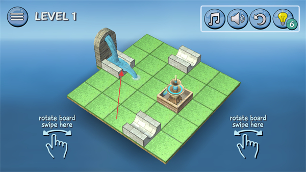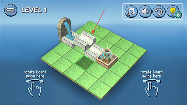 2、按照提示,通過(guò)滑動(dòng)操作轉(zhuǎn)動(dòng)板塊,調(diào)整石磚位置,引導(dǎo)水流方向。