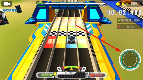 4、游戲界面右下方有操控按鈕,通過(guò)它來(lái)控制賽車速度,在直道上可以全力加速,在彎道提前減速,讓賽車平穩(wěn)通過(guò)彎道,提升比賽成績(jī)。