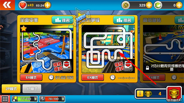 2、點(diǎn)擊手動(dòng)賽后,進(jìn)入賽道選擇界面,這里有不同難度和地形的賽道,新手初期可以選擇難度相對(duì)較低的賽道。