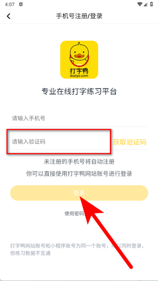 4、輸入驗(yàn)證碼后,點(diǎn)擊登錄,即可進(jìn)入平臺練習(xí)打字。