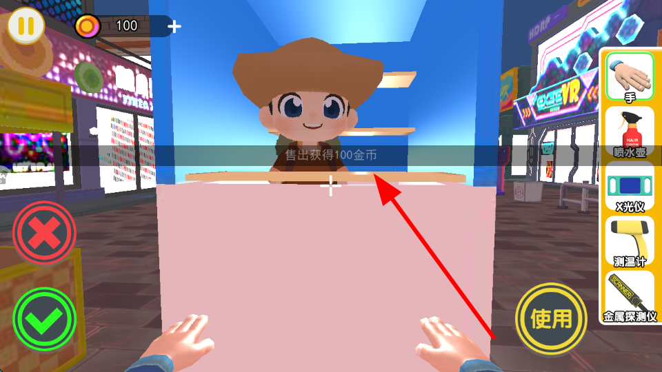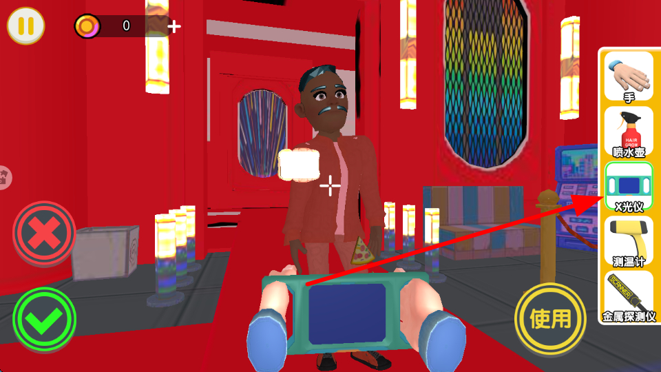 1、掃描操作,選擇右側(cè)X光儀工具,點(diǎn)擊使用,可對(duì)人物進(jìn)行掃描,查看其是否攜帶東西。