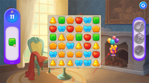 1、進(jìn)入游戲,關(guān)注右側(cè)帶氣球的禮盒,點(diǎn)擊可開(kāi)啟獎(jiǎng)勵(lì)流程。