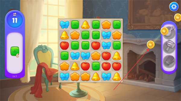 2、使用右側(cè)箭頭指向的道具,觸發(fā)金幣掉落獲取資源。