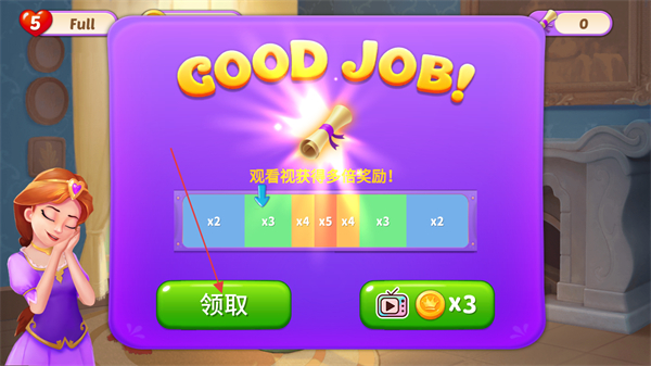 4、關(guān)卡完成后,點(diǎn)擊綠色領(lǐng)取按鈕直接獲取獎(jiǎng)勵(lì)。