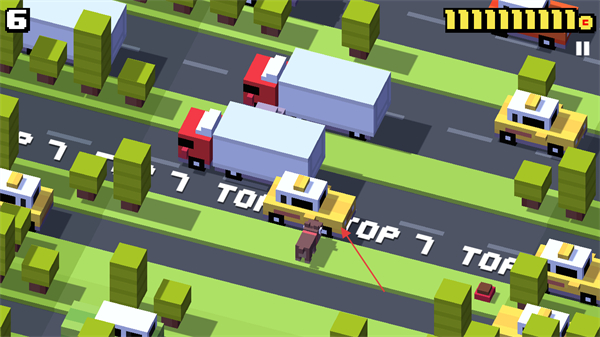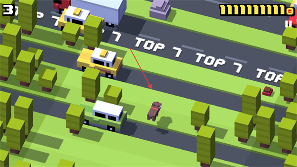 2、成功穿過馬路后,繼續(xù)操控角色前進(jìn),留意道路上出現(xiàn)的TOP7等標(biāo)識,同時(shí)注意來往車輛。