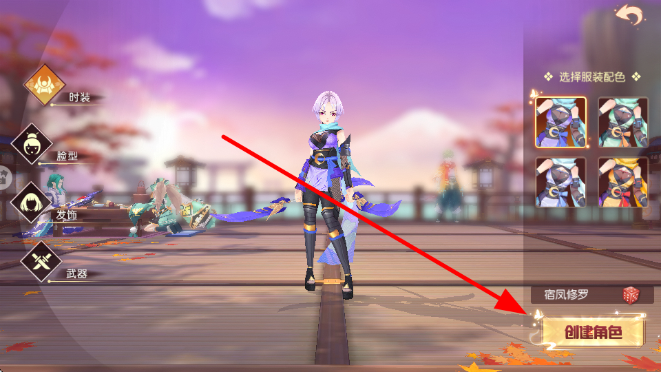 1、職業(yè)角色創(chuàng)建時,選擇時裝、臉型、發(fā)飾、武器等,打造心儀的角色形象,設(shè)置好后點擊創(chuàng)建。