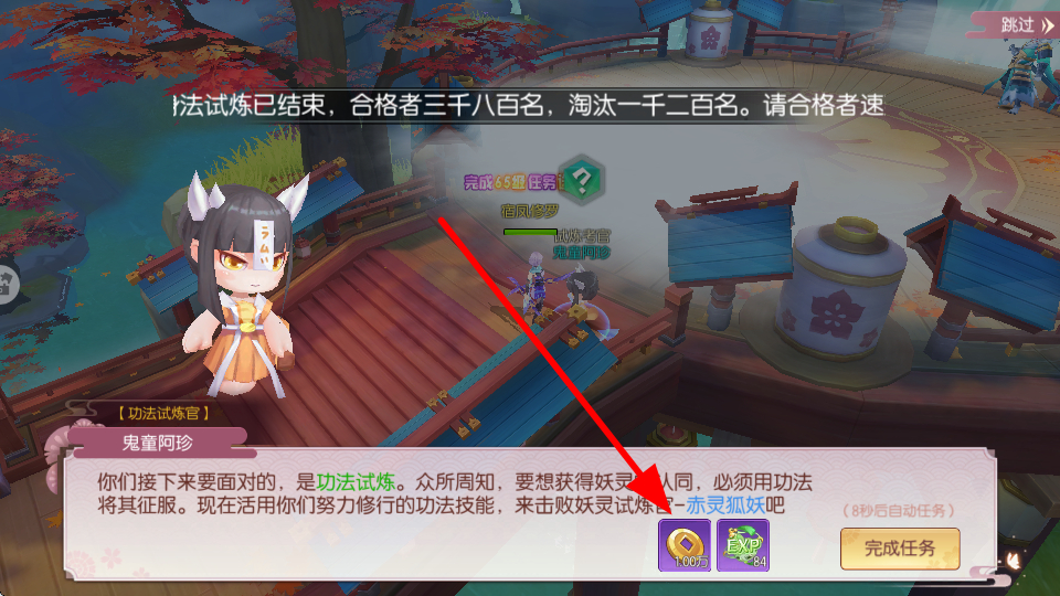 2、跟隨任務(wù)指引,與NPC對話接取任務(wù),完成如功法試煉等任務(wù)要求,推進劇情,獲取經(jīng)驗等物品。