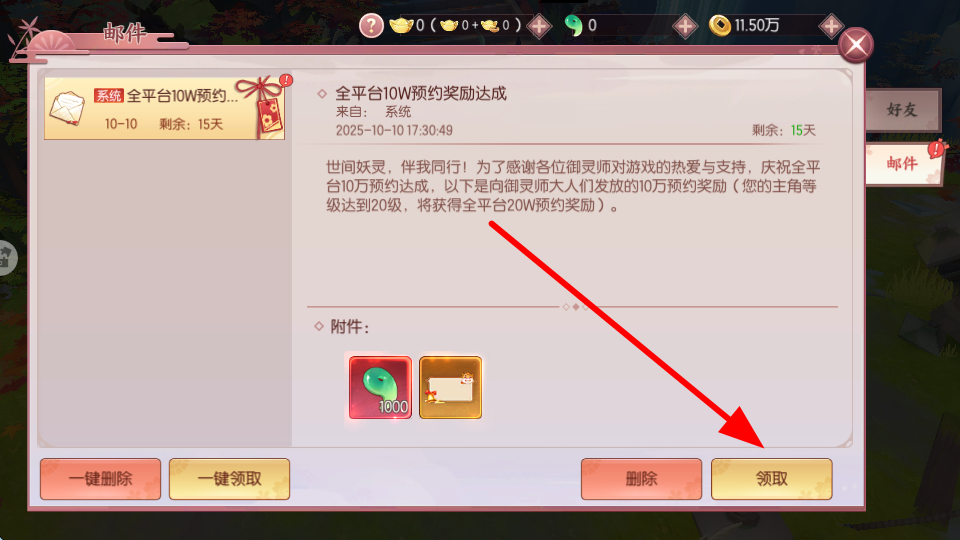 4、郵件福利領(lǐng)取,系統(tǒng)發(fā)送的郵件,如全平臺預(yù)約獎勵郵件,點擊領(lǐng)取,獲取郵件中福利的東西。