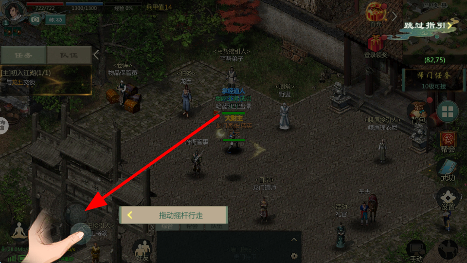 1、玩家拖動左側(cè)搖桿,控制角色在場景中行走,以此到達(dá)不同地點(diǎn),推進(jìn)任務(wù)或探索地圖。