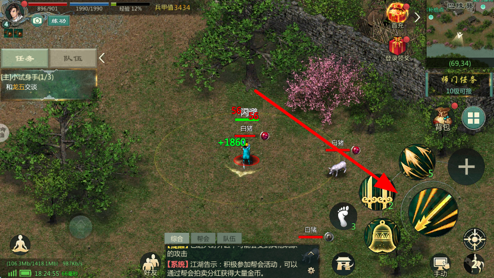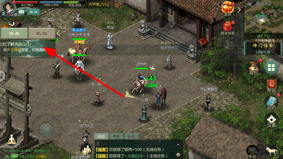 2、跟隨任務(wù)指引,與指定NPC交談或完成任務(wù)要求,獲取經(jīng)驗(yàn)、道具等獎勵,提升角色等級。
