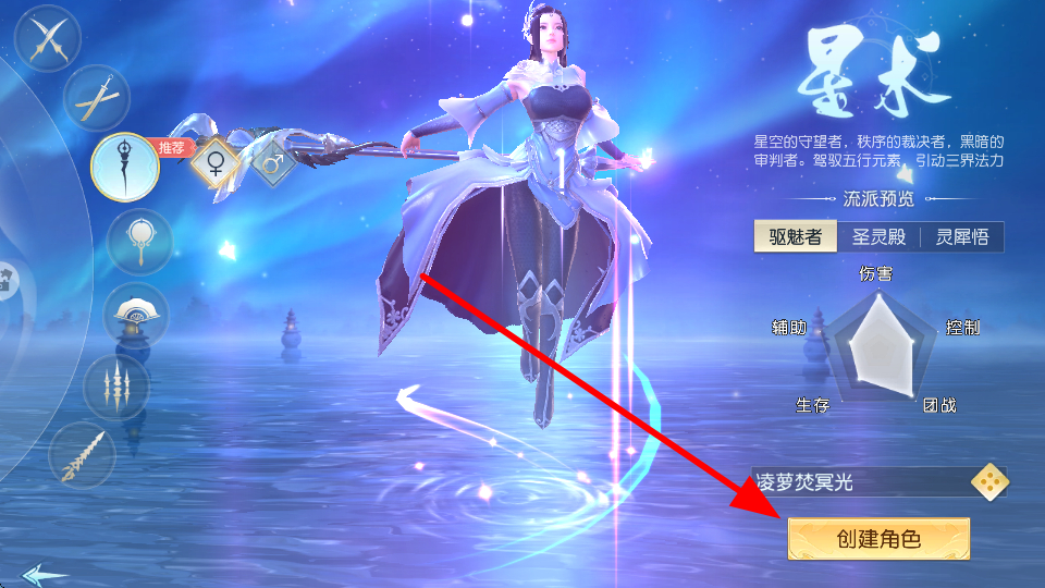 1、在角色創(chuàng)建界面,選擇心儀的職業(yè),設(shè)置好相關(guān)選項(xiàng)后,點(diǎn)擊創(chuàng)建角色,即可進(jìn)入游戲世界。