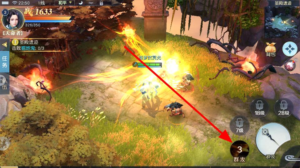 3、點(diǎn)擊右側(cè)對(duì)應(yīng)技能,可以釋放技能,對(duì)敵人造成傷害,不同技能有不同效果,需合理使用。