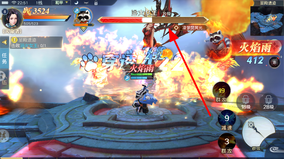 4、戰(zhàn)斗中留意boss血條變化,通過持續(xù)釋放技能攻擊boss,待其血條清空,即可成功擊殺boss。