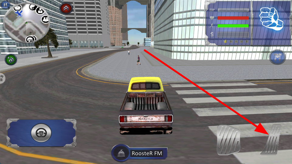4、觸發(fā)變身功能后,機(jī)甲變?yōu)槠?chē)形態(tài),踩下油門(mén)按鈕,驅(qū)動(dòng)汽車(chē)快速行駛,提升移動(dòng)效率。