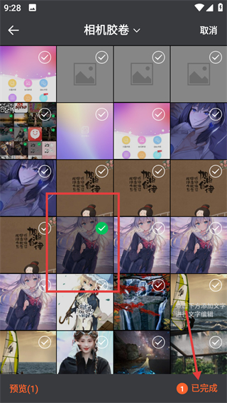 3、在照片選擇頁面,勾選要分割的照片后,點擊已完成,將照片添加到分割頁面。